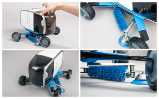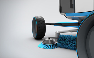 To adapt to any street, the undercarriage extends to more than twice its width (from 140 to 300cm). The combination of horizontal and vertical brushes ensures the best coverage at the kerb as well as under the sweeper itself. Another innovation is an extendable vacuum arm for detailed cleaning of tight spaces, between cars, for example, or under park benches.